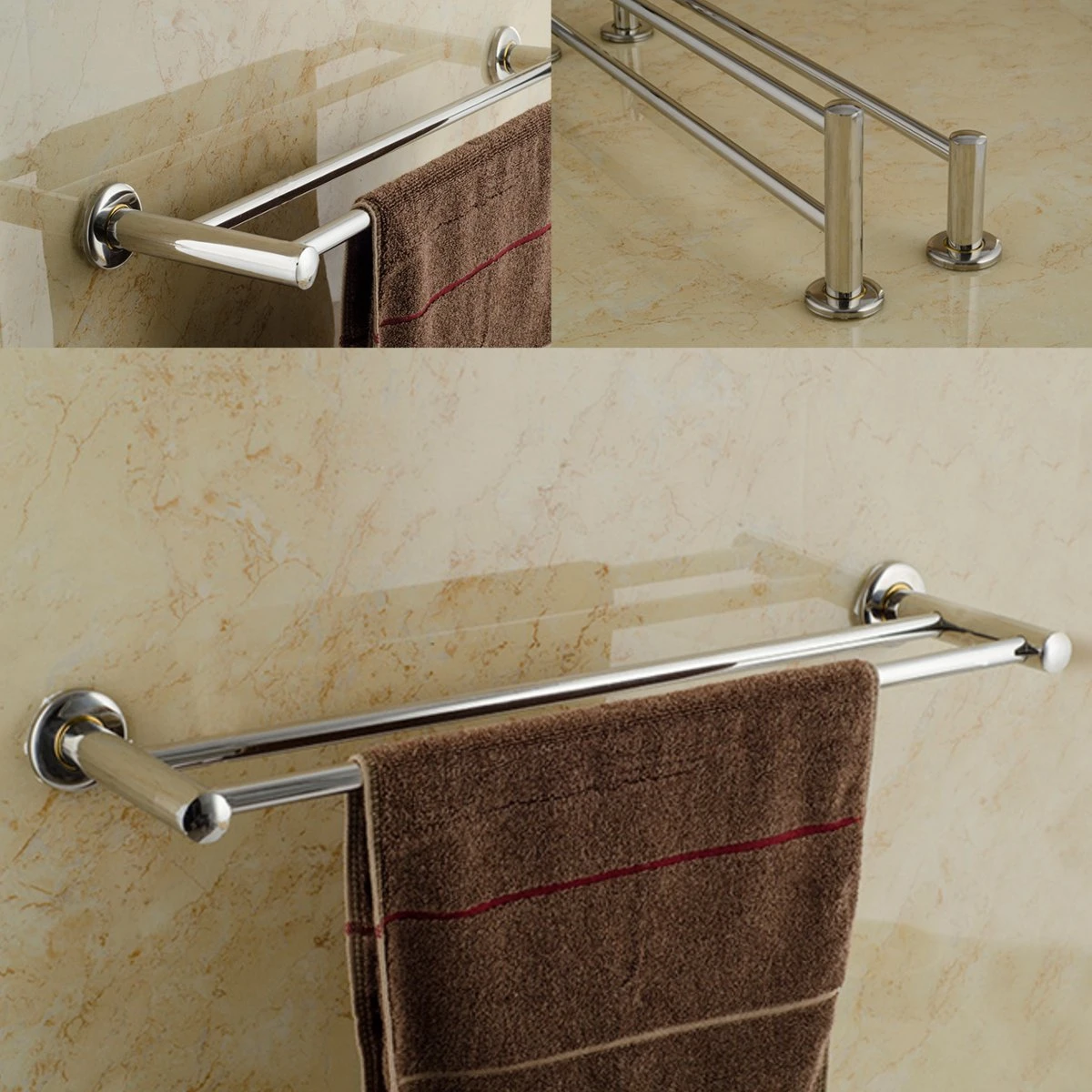 Double Rod Towel Bars : Brushed steel double towel bar bar towel rod towel bar lavatory wall bar bathroom wall mount.. Find contemporary towel racks, toilet paper holders, shelves and more for the bathroom. Easy to clean and maintain, just wipe it with a multifunctional towel rack for efficient collection of items. This innovative spot resist finish resists fingerprints and water spots to maintain the brilliance of the original finish and easily wipes cleans. It won't easily become rusty in humid environment thanks to brass material. Our double towel bar with rope rosettes adds elegant style to any bath.